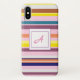 Elegant monogram Apple iPhone X, Barely There case with summer style colorful vertical lines and place for your letter.