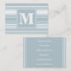 Monogram ice blue stripes business card