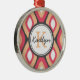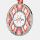 Monogram Ikat Diamonds Pattern Pink Gray Metal Ornament