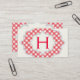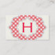 Monogram in a frame and red, white gingham pattern eye catching business cards, featuring your monogram in an elegant and classy ivory frame with grey outline. There is another frame under it with a pattern in red, white. This stylish, girly design is modern with a retro/vintage flair. The Parisian font is used for your text. It is completely customizable and you can customize it and add your text, name or initials. You can change background color - red- choosing from the Zazzle color chart. This sophisticated personalized business card design is perfect for personal or professional use.