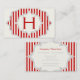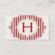 Monogram in a frame and red, white stripes eye catching business cards, featuring your monogram in an elegant and classy ivory frame with grey outline. There is another frame under it with a striped pattern in red, white. This stylish, girly design is modern with a retro/vintage flair. The Parisian font is used for your text. It is completely customizable and you can customize it and add your text, name or initials. You can change background color - red- choosing from the Zazzle color chart. This sophisticated personalized business card design is perfect for personal or professional use.