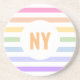 Monogram in White Circle Pastel Rainbow Stripes Coaster