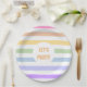 Monogram in White Circle Pastel Rainbow Stripes Paper Plates