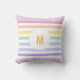 Monogram in White Circle Pastel Rainbow Stripes Throw Pillow