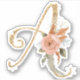 Monogram Initial A Gold Glitter Peony Rose Floral Sticker