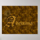 Elegant monogram with your name letter A in gold satin with a delicate peony flower poster print. Replace your name in the template. Click on Customize to change font size, style, and color.