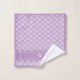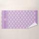 Personalized bath towel featuring an abstract purple floral pattern. Add your monogram for a custom touch.