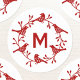 A wreath of redbScandinavian birds and berries surrounding a monogram initial. Original art by Nic Squirrell. Change the monogram to personalize.