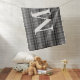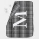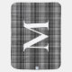 Create your own monogram initial baby blanket personalized with custom initial with black and white color plaid pattern background.