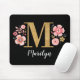 A beautiful, feminine monogrammed pink floral mouse pad, featuring pink flowers and a faux gold monogram letter M on a black background. Personalize the mouse pad by adding your name underneath the monogram. Makes a fun gift for a friend or for a bridesmaid gift. Designed for you by Blackberry Boulevard.
