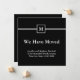 This moving announcement can be customized with your monogram, name and new address. At the top, there's a square for your monogram. The text is white. The background is black.