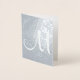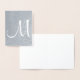 Custom Monogrammed silver foil folded card, blank inside. A Stylish, Script font decorates this Monogrammed note card. The Initial can be edited to a different letter with the template to personalize on the product page. The typography shows the paper type, similar to a cut-out look of the foil. The card is mostly the foil layout with the letter showing the paper. The inside is left blank for your message. The back is mainly the foil print with the attribution printed. The card is setup as Silver Foil on Kraft Paper, but Gold can be chosen for the foil and the paper can be changed to another type. Various Card Sizes and Envelope paper types are available.