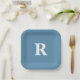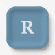 Monogram Initial Custom Colors Dusty Blue White Paper Plates