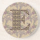 Elegant monogram letter E filled with a pretty vintage floral design sandstone drink coaster. Please visit Smilin' Eyes Monograms to see more floral, nature, and digital art monogrammed cards and gifts.