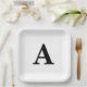 Monogram Initial Elegant Custom Name Black White Paper Plates