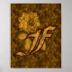 Elegant monogram letter F in gold satin with a delicate peony flower poster print.