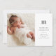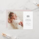 This pretty birth announcement features a large square photo and a traditional design. On the front of the card, the square photo is displayed on the left. Your baby's monogram appear on the right. Below, add the baby's name, birth date, birth stats, and your names. The white background on the front and the blush pink background on the back can be changed to any colors you'd like. Additional photos and a custom message can be added to the back of the card if desired.