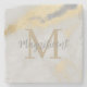 Monogram Initial Gold and Gray Marble Stone Coaster