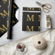 Monogram Initial Gold Black Custom Name Party Wrapping Paper