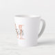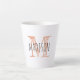 A stylish modern latte mug featuring a sketched font style coral monogram initial with hand lettered style typeface name overlay in soft gray black. A great looking mug for your kitchen, or dorm room. The perfect gift for your daughter when she goes off to college.
