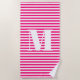 Custom Monogram initial hot pink fuchsia and white stripes chic Beach Towel