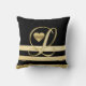 Monogram Initial 'L' Gold Black Heart Throw Pillow