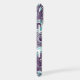The phone case design features a spiral wave in white and shades of purple with an initial letter monogram centered on it. Personalize the template field with your information, remove one text element or edit using the design tool to select a font style, size, and color you prefer.