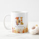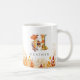 Elegant watercolor leaves frame the bottom of this mug while the letter H is a collage of festive fall element of red orange and yellow leaves, Personalize with a name to make it uniquely yours.