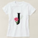Monogram Initial Letter J in Black with Pink Rose T-Shirt
