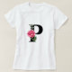 Monogram Initial Letter P in Black with Pink Rose T-Shirt