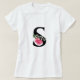 Monogram Initial Letter S in Black with Pink Rose T-Shirt