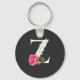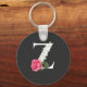 Monogram Initial Letter Z in White with Pink Rose Keychain