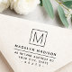 Elegant return address rubber stamp featuring your monogram initial with name and address below. Modern, minimal style
