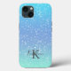 Monogram Initial Name Blue Green Sparkle Ombre Case-Mate iPhone Case