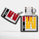 A simple and modern monogrammed design (name and initial) with big and bold color letters and striped background... good stocking stuffer idea for men