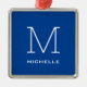 Monogram Initial Name Deep Blue Unique Minimalist Metal Ornament