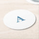 Monogram Initial Name Dusty Blue White Simple Cool Round Paper Coaster
