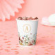 Lovely 8oz. or 12oz. quality paper cup featuring a watercolor Dutch still life floral border, framed initial, and name on back in gold-color typography lettering. Easily change, add or remove text to make it yours using the Template provided. ideal for cold and warm beverages. Add a lid for a small charge. See "About This Product" at side for additional information. Printed in USA.