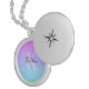 Monogram these pink to blue ombre pattern double monogrammed locket necklace. Add your initial and your name.