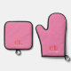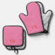 Monogram Initial Name Pink Oven Mitt & Pot Holder Set