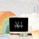 Monogram Initial Name White Script Gray Black. A stylish fully customisable monogram design with your name in an informal white script overlaid onto your initial large in soft gray against a black background. Easy to personalise. Change the text and background Colors if you wish via the edit further option.