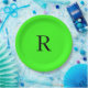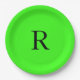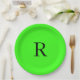 Monogram Initial Neon Green Bright Colorful Custom Paper Plates