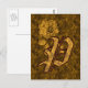 Monogram Initial P Elegant Gold Peony Flower Postcard