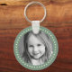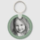 Keyring featuring your monogram initial inside a retro radial dot border on a sage green background and a custom photo on the back.