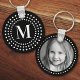Monogram initial photo retro radial dots black keychain