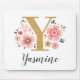 A beautiful, feminine monogrammed pink floral mousepad, featuring pink flowers and a faux gold monogram letter Y. Personalize the mousepad by adding your name underneath the monogram. Makes a fun gift for a friend or for a bridesmaid gift. Designed for you by Blackberry Boulevard.
