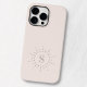 Elegant iPhone case with your monogram initial inside a border of radial dots resembling a sun. Very light brown on muted pink. Colors can be customized with the design tool.