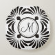Monogram Initial Round Pillow-Black Floral Pillow