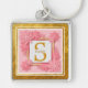 Monogram Initial "S" Floral - Pink Roses & Gold Keychain