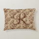 Monogram Initial Script Brown Rose Gold Leaves Accent Pillow